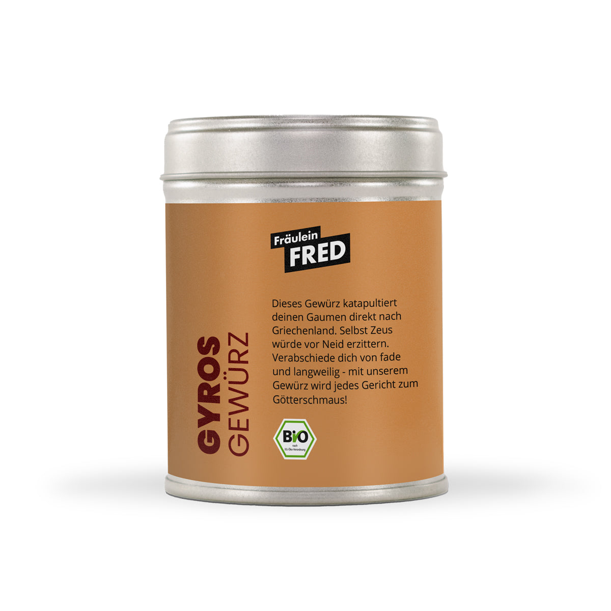 Gewürzzubereitung: Knoblauch*, Zwiebel*, Paprika*, Tomaten*, Fleur de Sel, Oregano*, Majoran*, Rosmarin*, Thymian*, Chili rot*. *aus kontrolliert biologischem Anbau.
